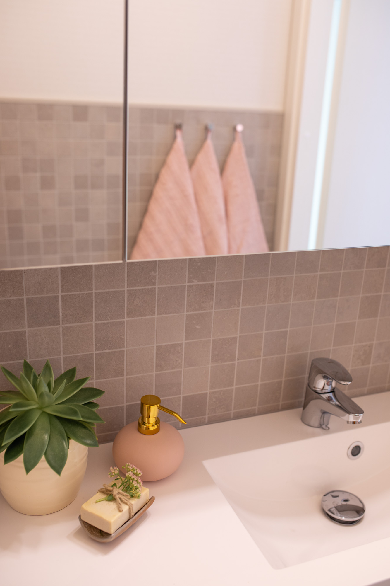 Ratkaisut ovat upean ulkonäön lisäksi käytännöllisiä, esimerkiksi kenkiä ei ole koskaan lattialla, niille on varattu täydelliset laatikostot. Keittiön roosa kaakelointi ja valaistus on saanut paljon kehuja sekä kauniit tammipilasterit.