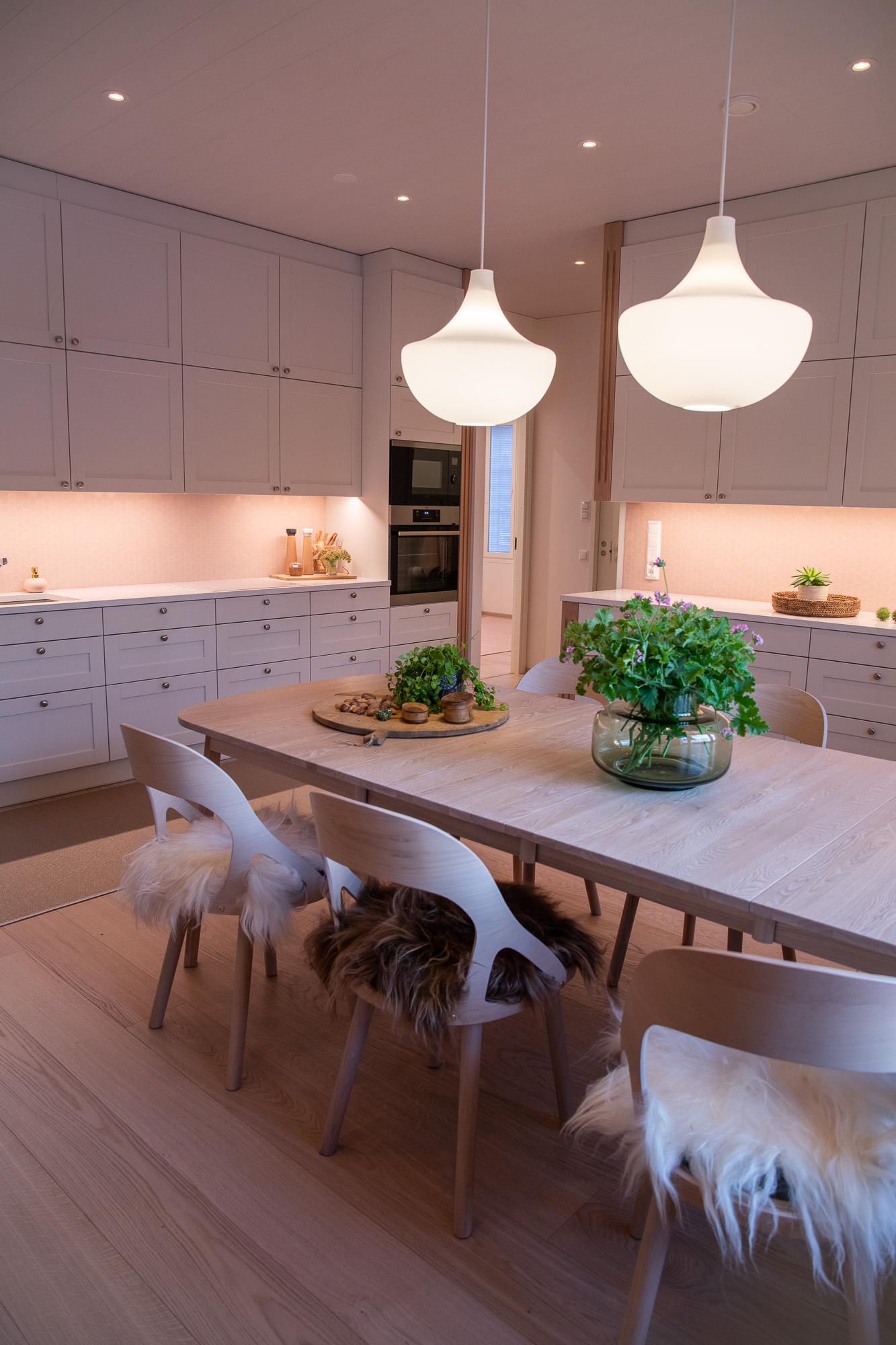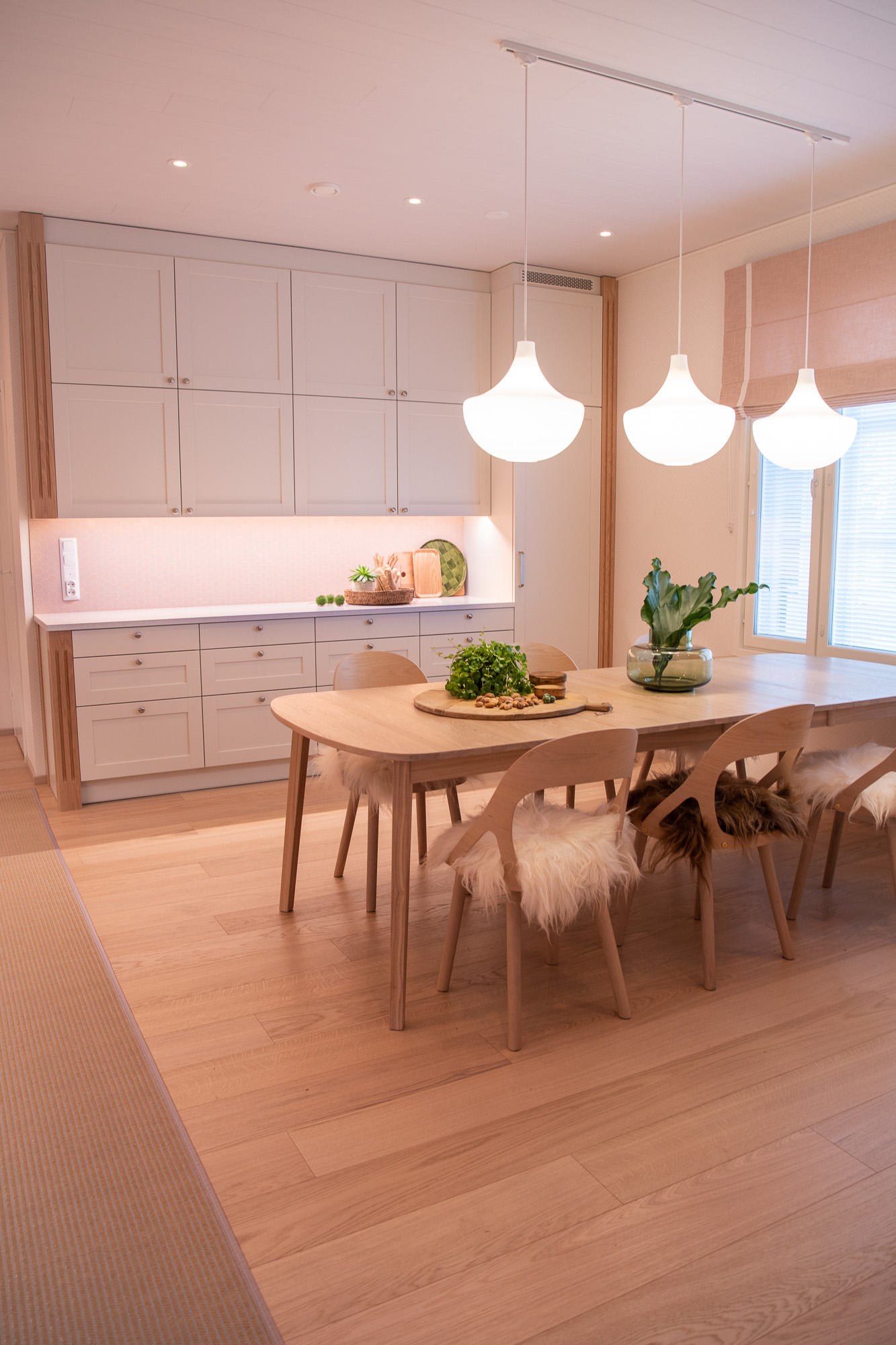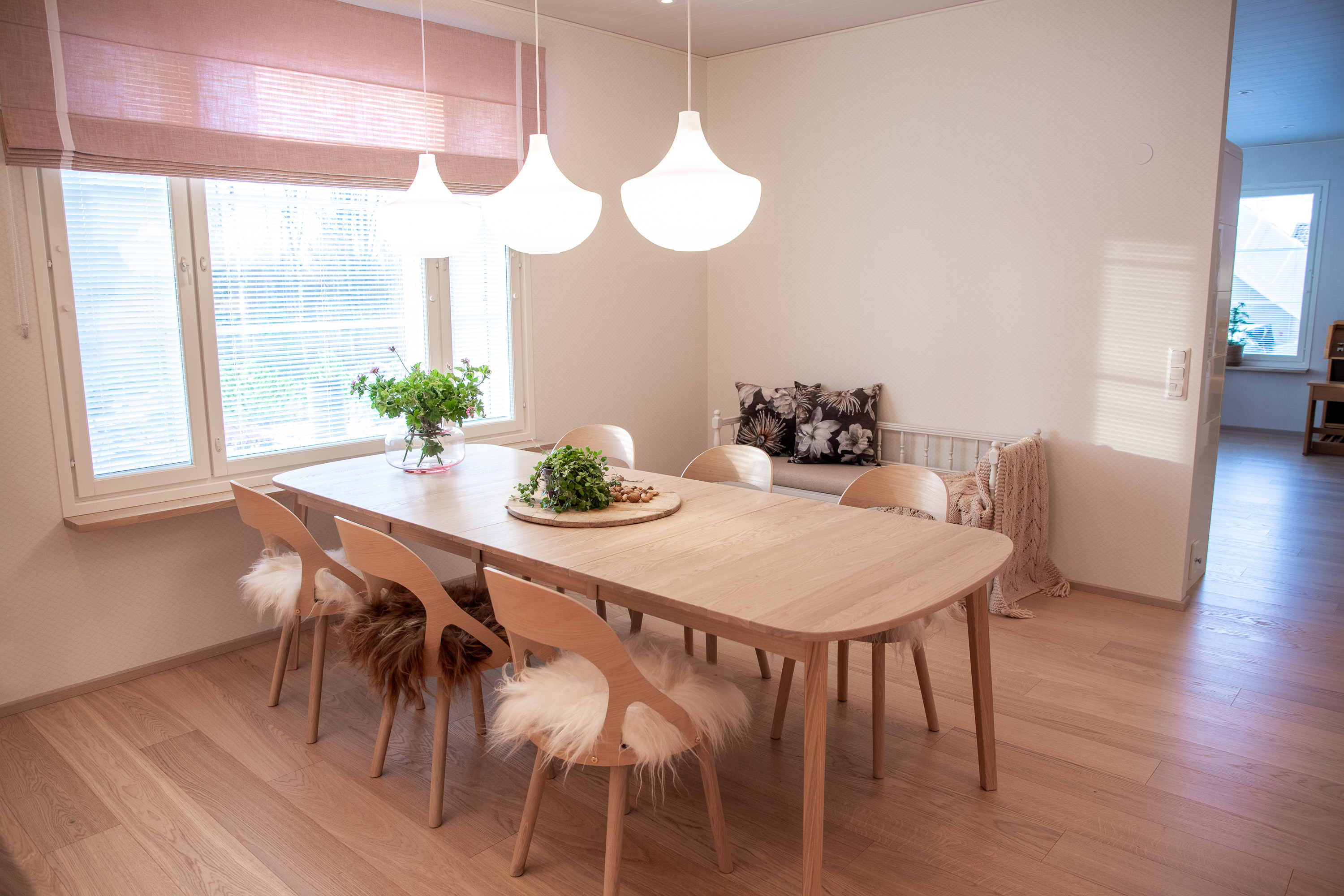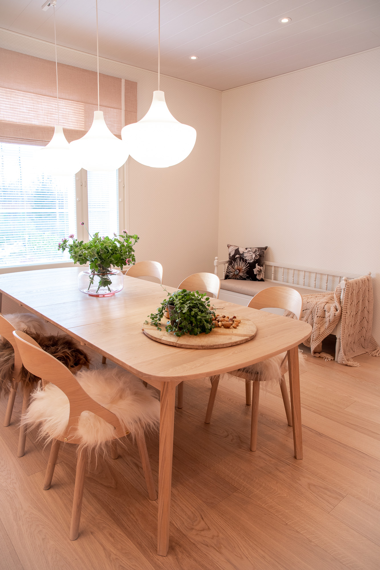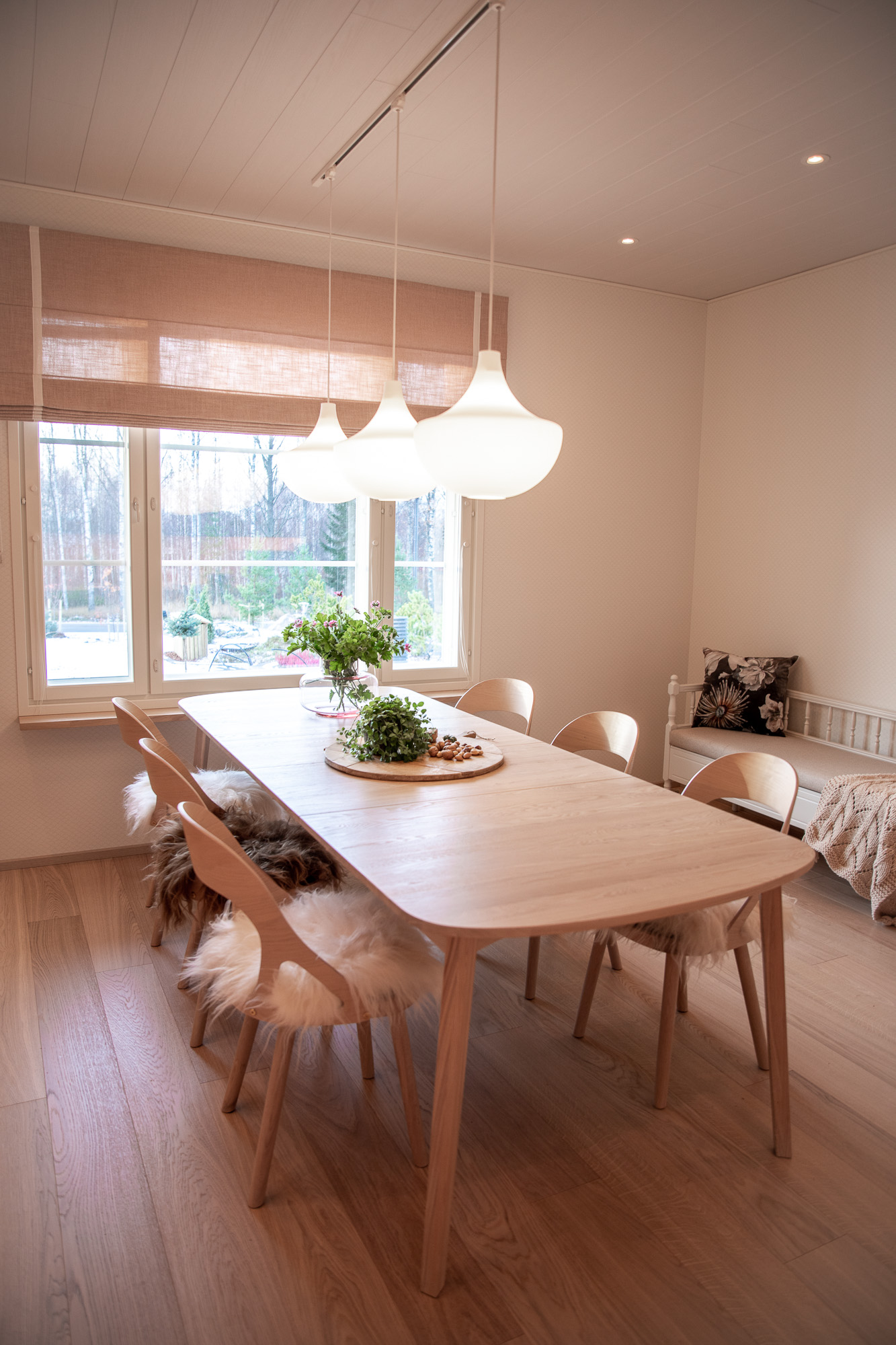 "Koti tuntuu parin vuoden asumisenkin jälkeen aina vaan uudelta. Sisustussuunnittelun parasta antia on että emme osaisi ajatella miten kotimme voisi olla parempi, tunnelma on rauhallinen ja levollinen. Näin myös useat vieraamme ovat kommentoineet.