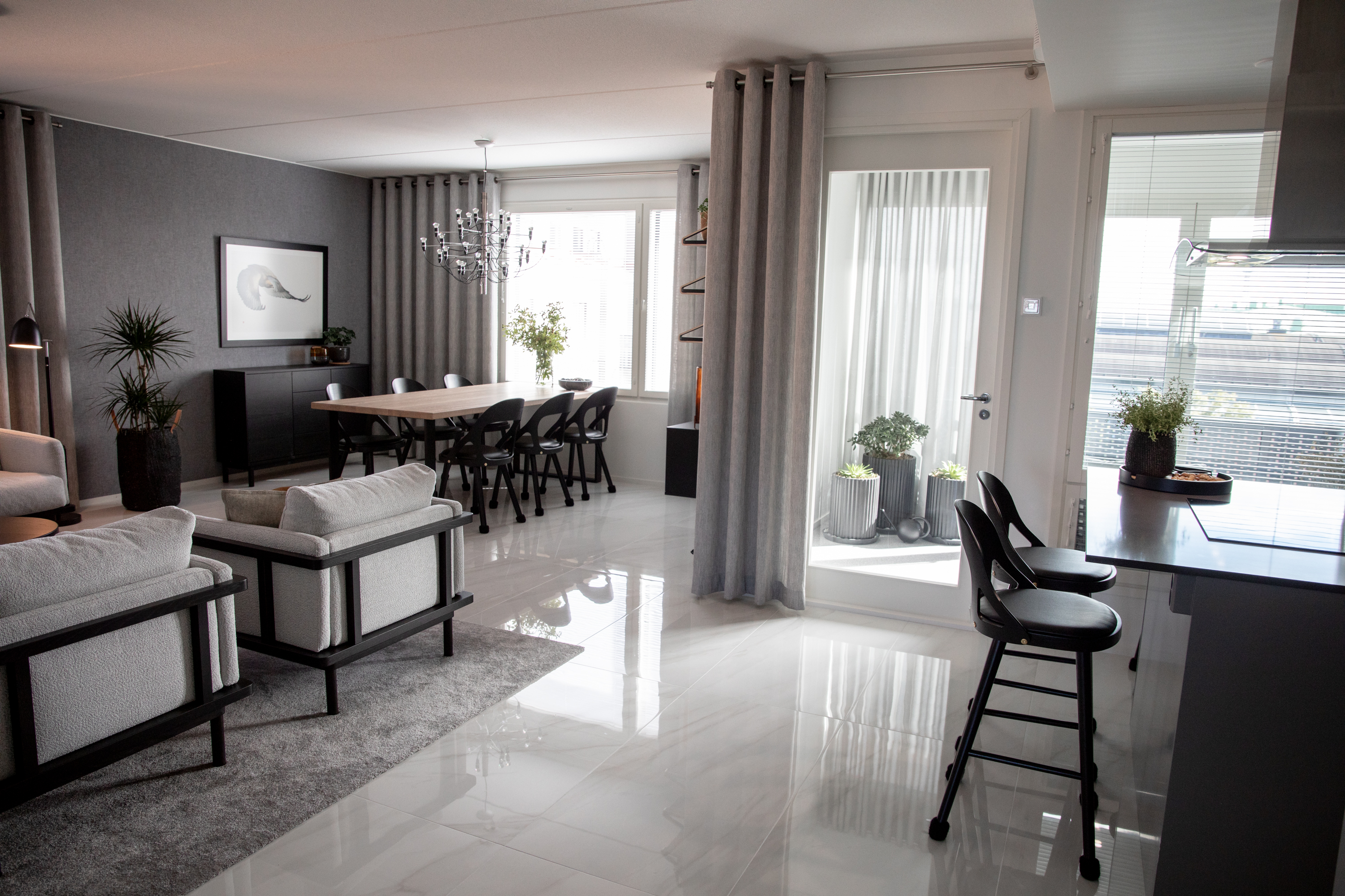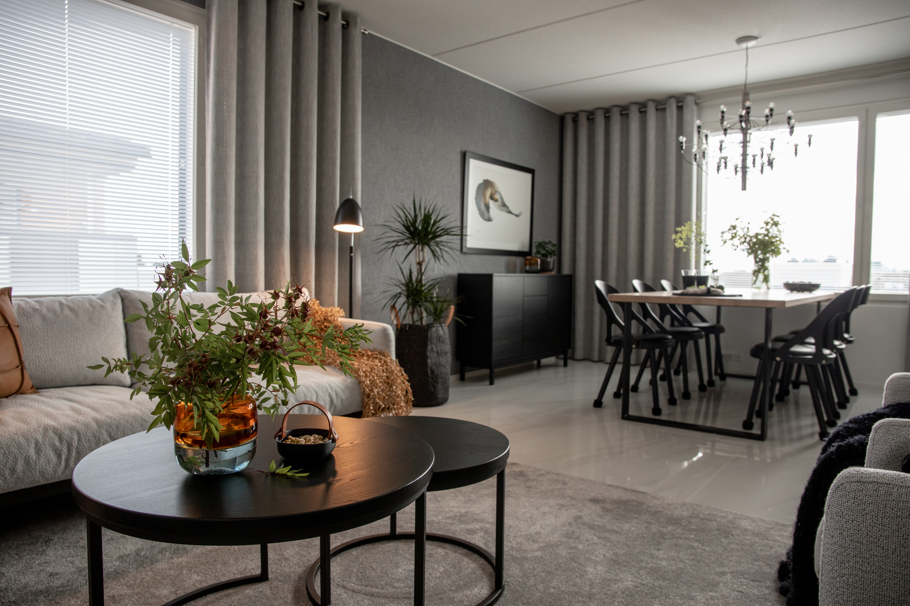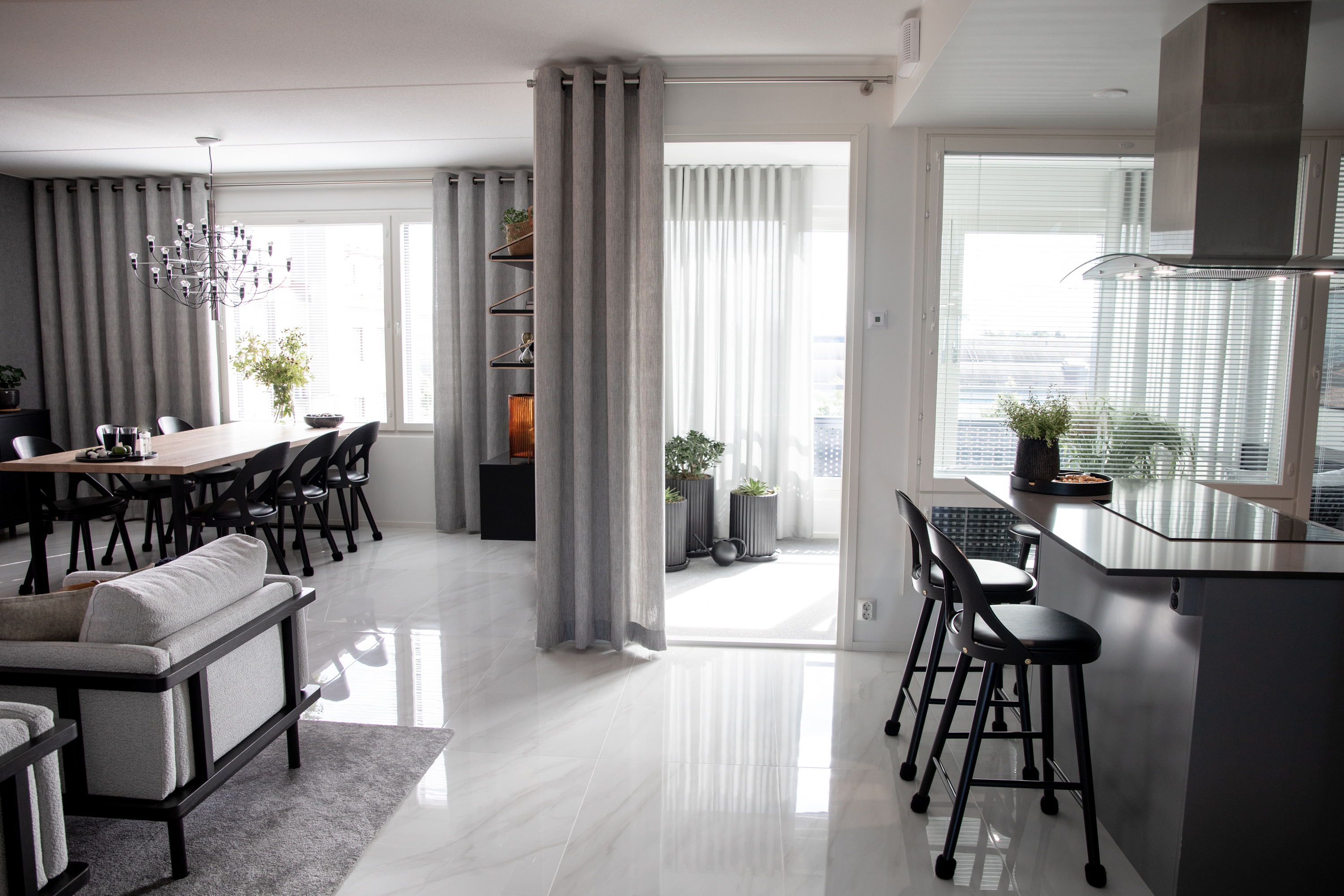 Kodin ratkaisut materiaalivalintojen, huonekalujen sijoittelun ja valaistuksen suhteen tekevät kokonaisuudesta erinomaisen, olen todella tyytyväinen siihen miten täydellisessä balanssissa sisustus on.